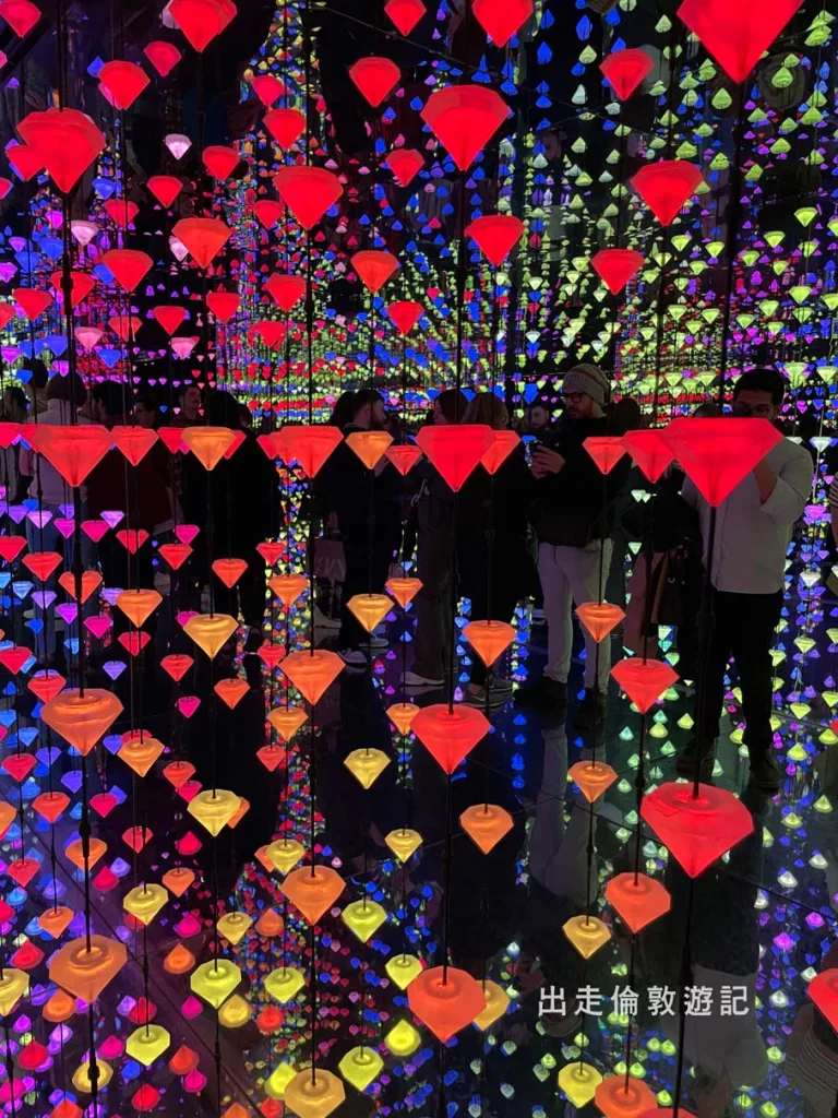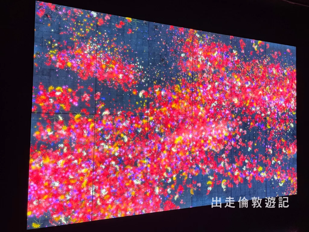 teamlab 是以其創新的數位藝術作品聞名。他們的作品通常涉及大規模的燈光、投影、互動技術以及數位動畫,觀眾可以進入作品中並與其互動。但這次的展覽只有一個大螢幕播片,還是日本的比較好。