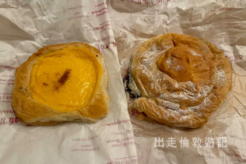 因為堂食需要排隊等位,我們最後選擇了外賣。大約下午才到達時,最有名的 Ensaimada 已經售罄。於是我選擇了 Custard and apple ensaimada 和 Chocolate ensaimada。