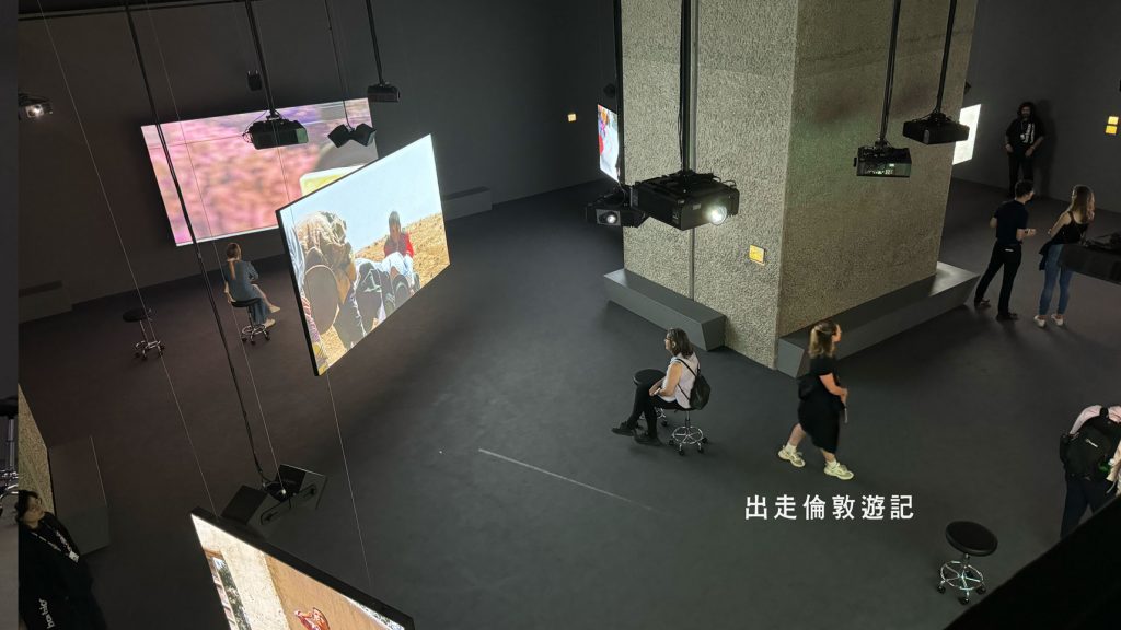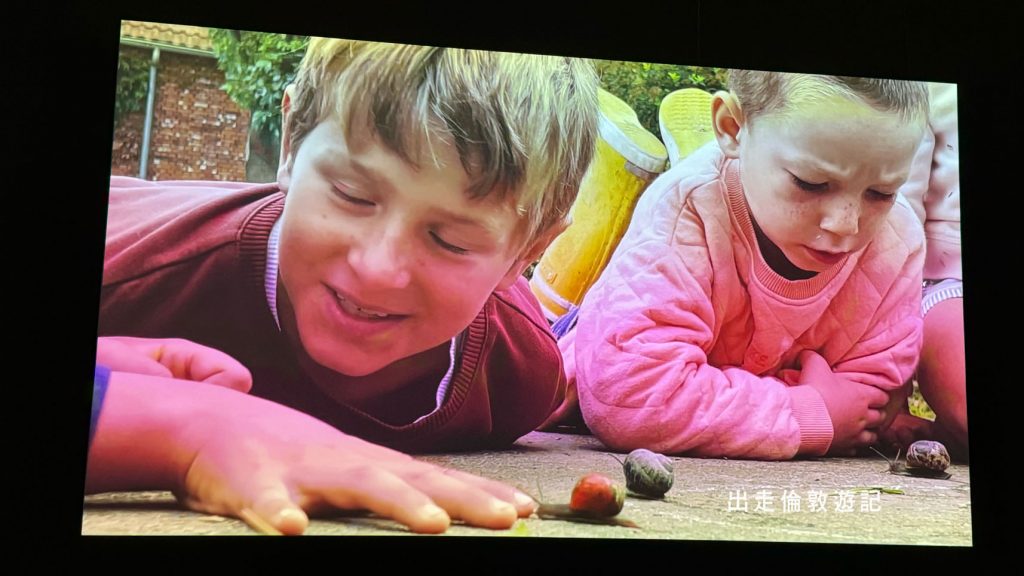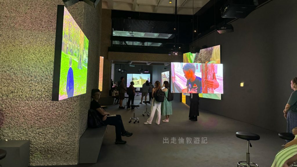 一走進展館,就看到大大小小的螢幕播放着他在各地拍攝小朋友玩樂的片段。場內也有很多空凳可隨心搬動。